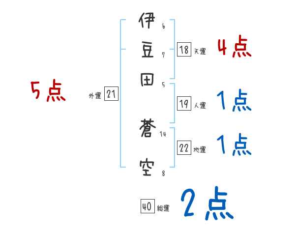 伊豆田蒼空さんの画数の鑑定結果