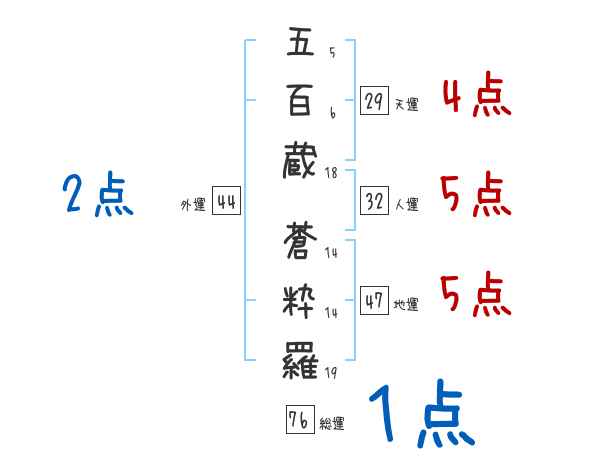五百蔵蒼粋羅さんの画数の鑑定結果