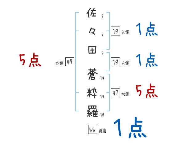 佐々田蒼粋羅さんの外運は47画の5つ星