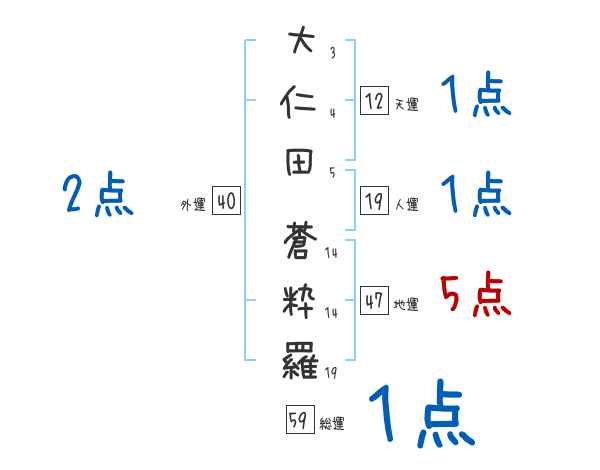 大仁田蒼粋羅さんの画数の鑑定結果