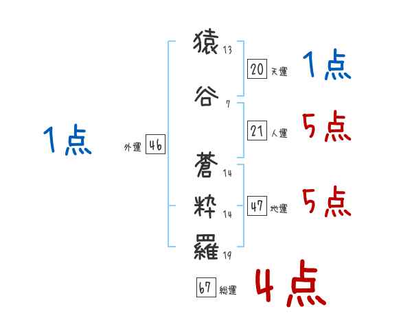 猿谷蒼粋羅さんの画数の鑑定結果