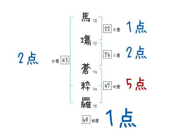 馬塲蒼粋羅さんの画数の鑑定結果