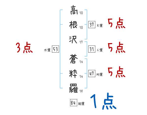 高根沢蒼粋羅さんの外運は53画の3つ星