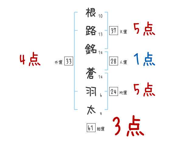 根路銘蒼羽太さんの画数の鑑定結果
