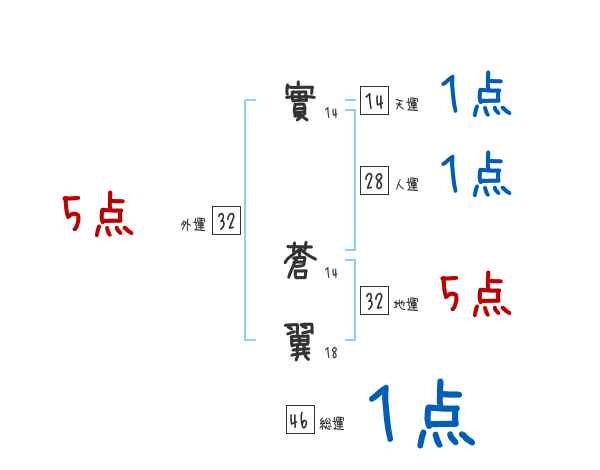 實蒼翼さんの画数の鑑定結果