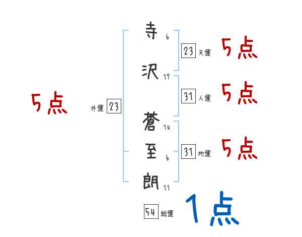 寺沢蒼至朗さんの画数の鑑定結果