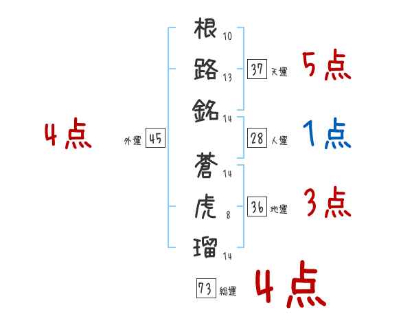根路銘蒼虎瑠さんの画数の鑑定結果