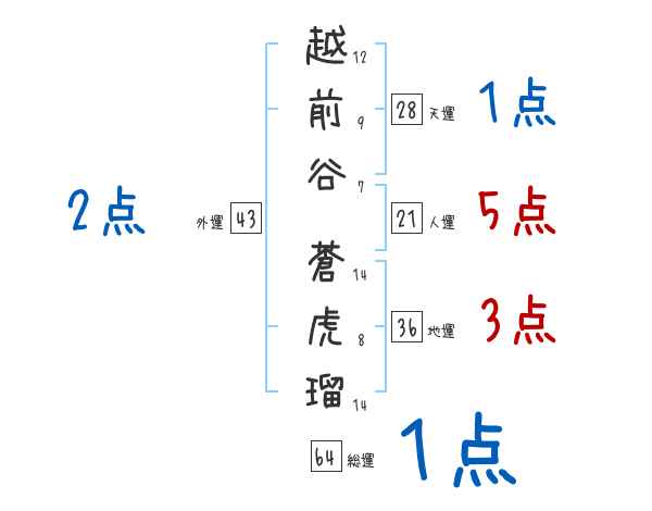 越前谷蒼虎瑠さんの画数の鑑定結果