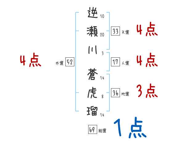 逆瀬川蒼虎瑠さんの画数の鑑定結果