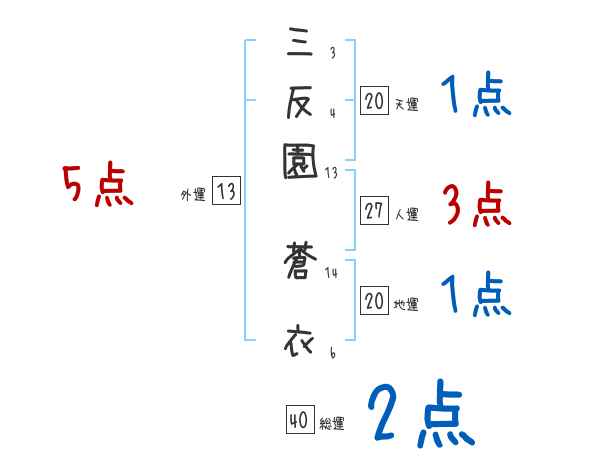外運![]() | 三反園蒼衣さんの外運は13画の5つ星!才能に恵まれ人気がある。名声を手に入れる。円満な人生。 生活面を象徴する運勢です。外部から受ける影響力を表し、結婚運、家庭運や職場、環境への順応性を表します。 |