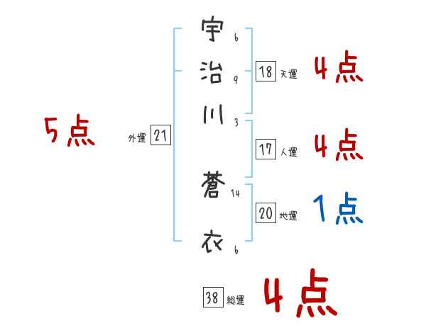 宇治川蒼衣さんの画数の鑑定結果