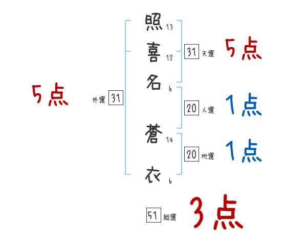 総運![]() | 照喜名蒼衣さんの総運は51画の3つ星!変化が激しく、危険に注意。堅実な性格。 あなたの人生を表す1番重要な運勢です。生涯を通じて影響する総合運となり、主に50歳以降の晩年期に影響を及ぼします。 |