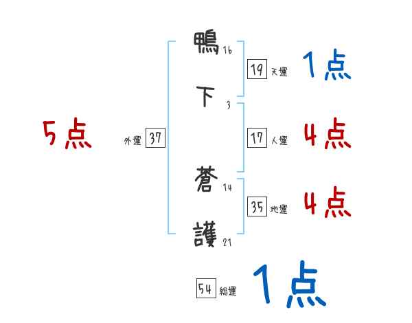 鴨下蒼護さんの画数の鑑定結果