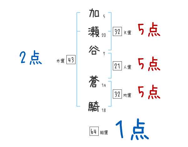 加瀬谷蒼騎さんの画数の鑑定結果