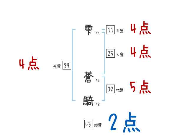 雫蒼騎さんの画数の鑑定結果