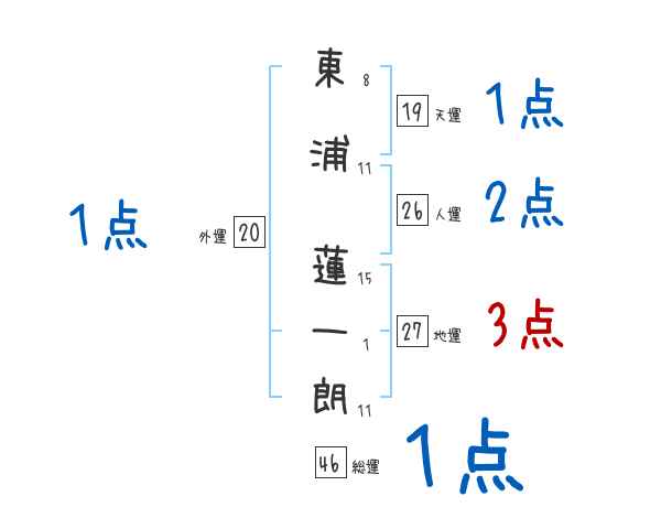 東浦蓮一朗さんの画数の鑑定結果