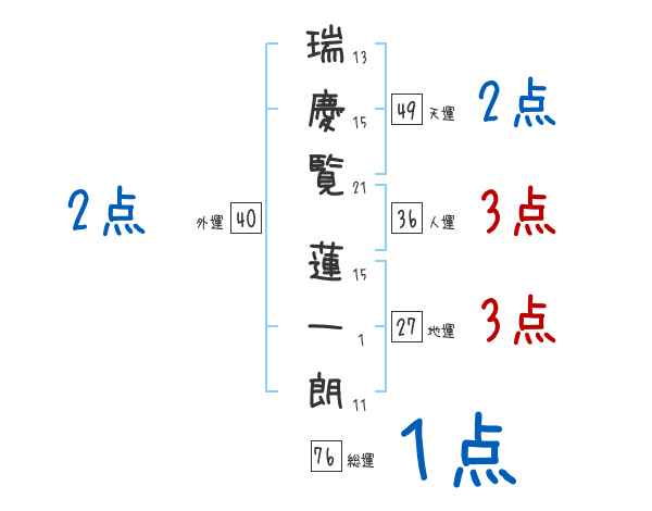 瑞慶覧蓮一朗さんの画数の鑑定結果