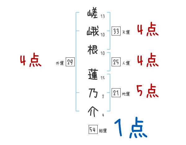 嵯峨根蓮乃介さんの画数の鑑定結果