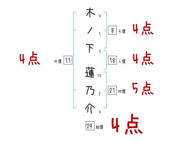 木ノ下蓮乃介さんの画数の鑑定結果