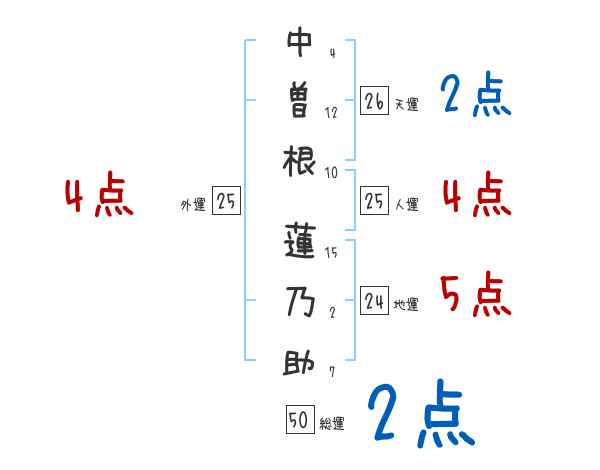 中曽根蓮乃助さんの画数の鑑定結果