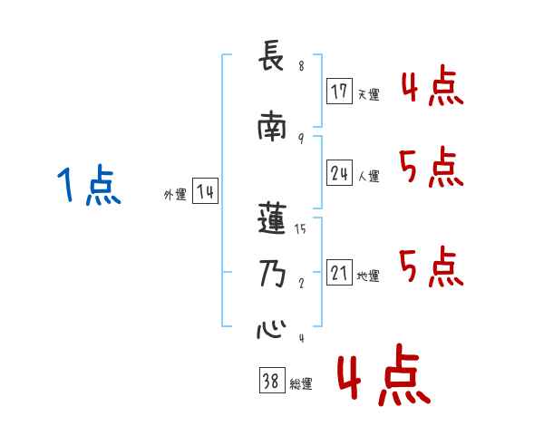 長南蓮乃心さんの画数の鑑定結果