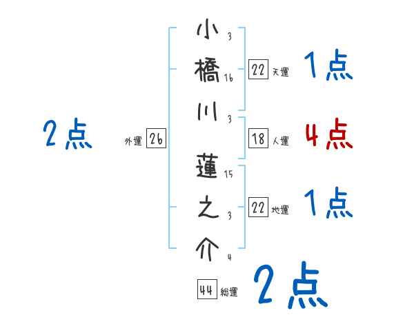 小橋川蓮之介さんの画数の鑑定結果