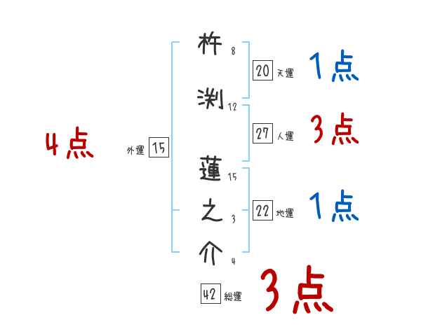 杵渕蓮之介さんの画数の鑑定結果