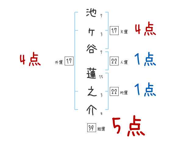 池ヶ谷蓮之介さんの画数の鑑定結果
