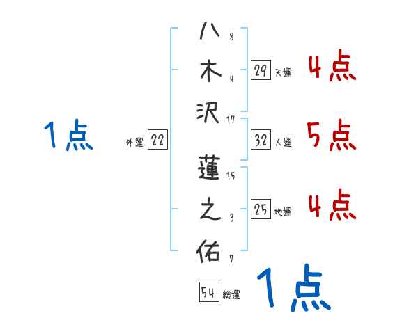 八木沢蓮之佑さんの画数の鑑定結果