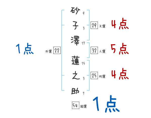 砂子澤蓮之助さんの画数の鑑定結果