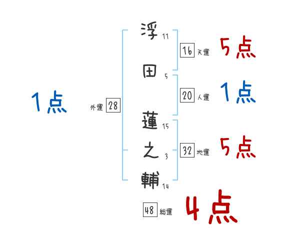 浮田蓮之輔さんの画数の鑑定結果