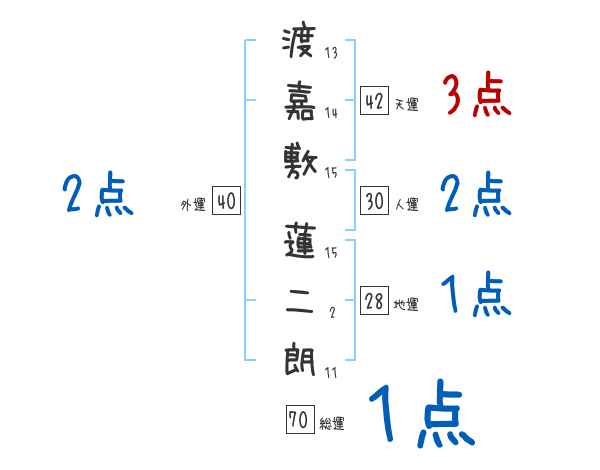 渡嘉敷蓮二朗さんの画数の鑑定結果