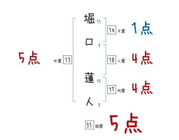 堀口蓮人さんの画数の鑑定結果