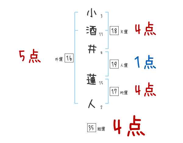 小酒井蓮人さんの画数の鑑定結果