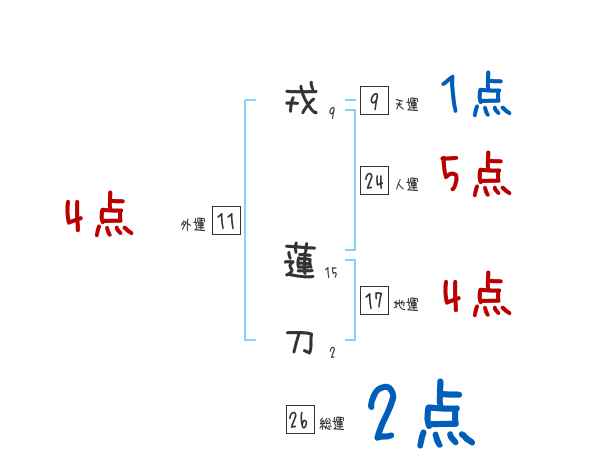 戎蓮刀さんの画数の鑑定結果