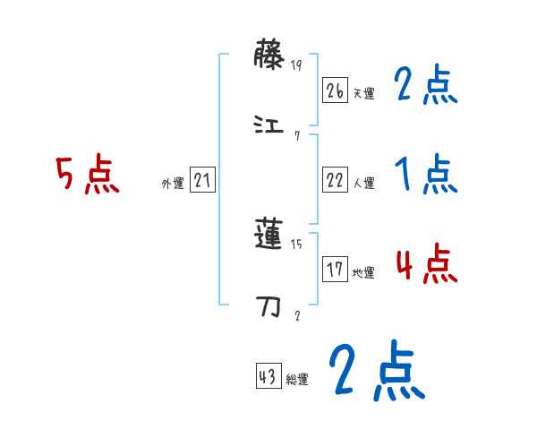 藤江蓮刀さんの画数の鑑定結果