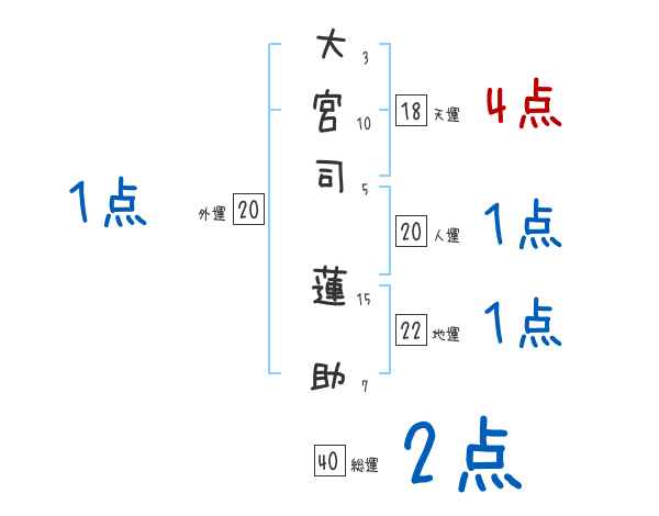 大宮司蓮助さんの画数の鑑定結果