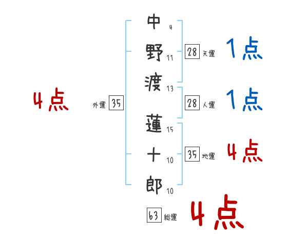 中野渡蓮十郎さんの画数の鑑定結果