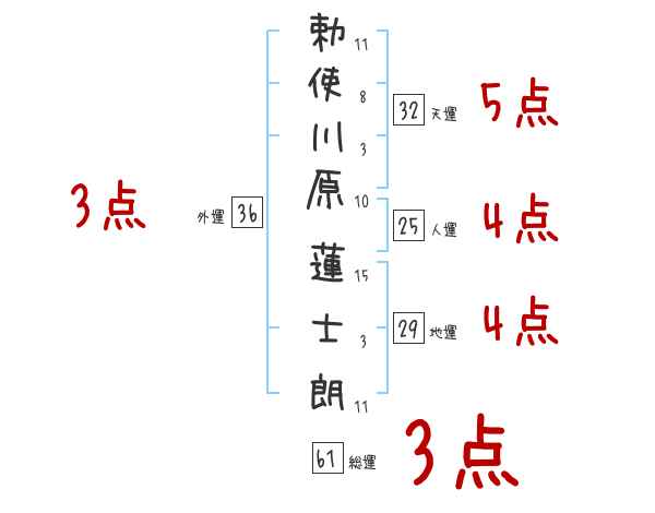 勅使川原蓮士朗さんの総運は61画の3つ星