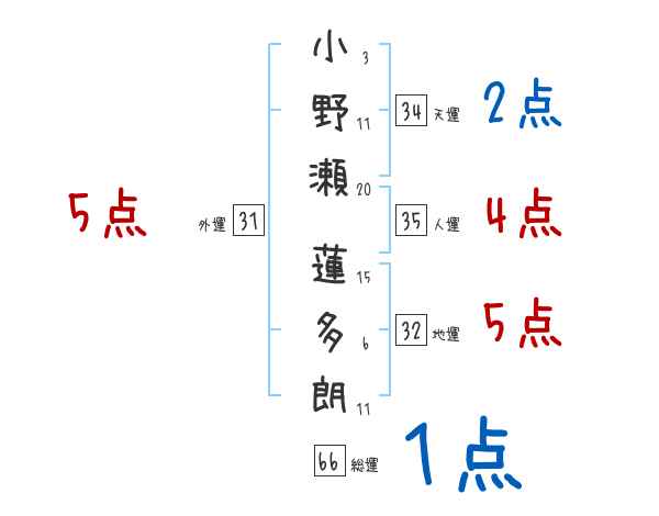 小野瀬蓮多朗さんの画数の鑑定結果