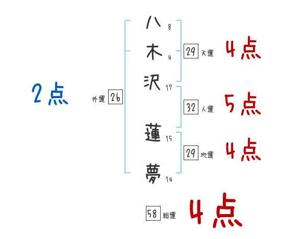 八木沢蓮夢さんの画数の鑑定結果