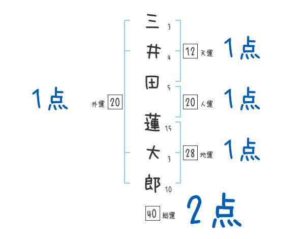 地運![]() | 三井田蓮大郎さんの地運は28画の1つ星!家庭環境に注意。スポーツで活躍できる能力があるかも。 個性を表す基礎的な運勢です。性格形成や対人関係、行動力など家庭環境に影響されます。主に誕生してから20歳くらいまでの若年期の運勢を表します。 |