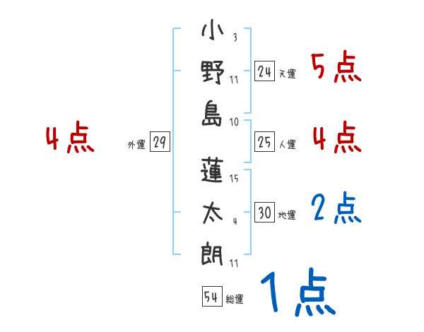 小野島蓮太朗さんの画数の鑑定結果