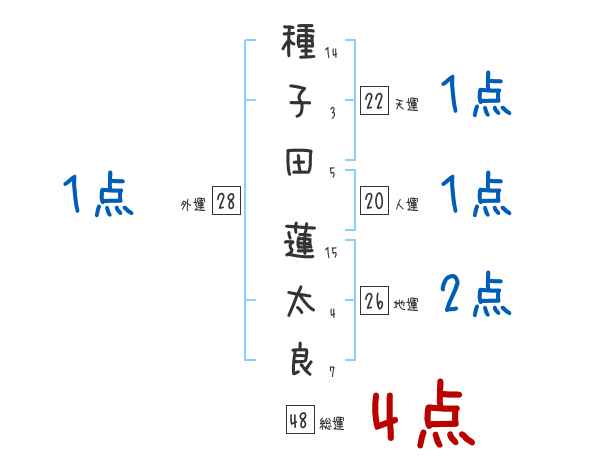 種子田蓮太良さんの画数の鑑定結果