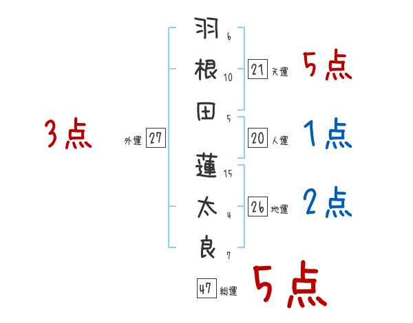羽根田蓮太良さんの画数の鑑定結果
