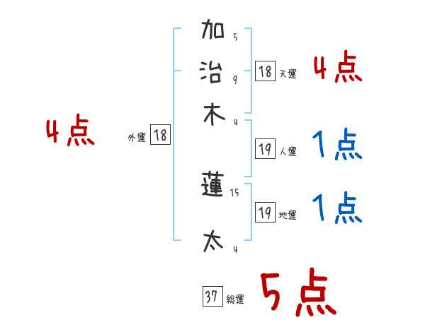 加治木蓮太さんの画数の鑑定結果