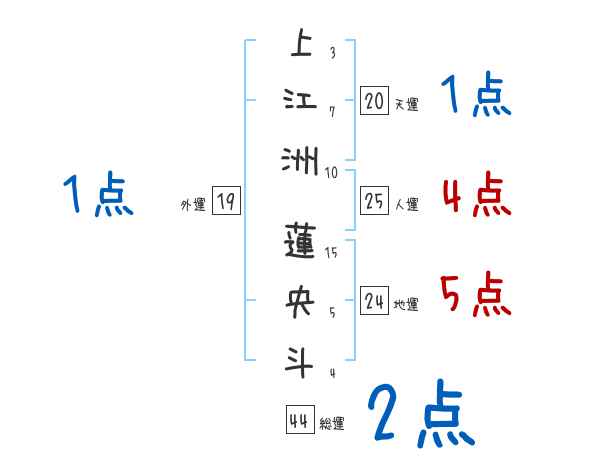 人運![]() | 上江洲蓮央斗さんの人運は25画の4つ星!個性があり才能があふれる。強運の持ち主で発展する。 性格や才能などを表す2番目に重要な運勢です。人間関係や協調性、社会的な成功に影響します。主に20歳から50歳ぐらいまでの中年期の運勢を表します。 |