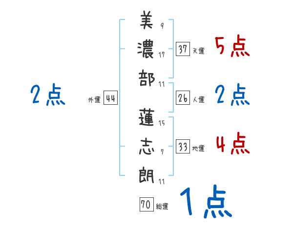 美濃部蓮志朗さんの画数の鑑定結果