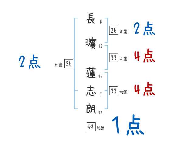 地運![]() | 長濵蓮志朗さんの地運は33画の4つ星!権力志向でプライドが高い。勇気があり運を切り開き成功する。 個性を表す基礎的な運勢です。性格形成や対人関係、行動力など家庭環境に影響されます。主に誕生してから20歳くらいまでの若年期の運勢を表します。 |