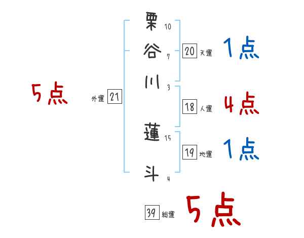 栗谷川蓮斗さんの画数の鑑定結果